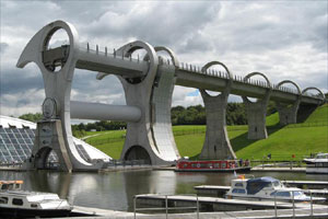 隨著科技的發(fā)展,許多技術(shù)與藝術(shù)的結(jié)合品一件件誕生。其中一個就位于英國,稱為世界十大升降機(jī)之一。佛斯與克萊德運(yùn)河動工于1768年,1777年時她接通了西岸的蘇格蘭第一大城格拉斯哥(Glasgow)與東部佛斯灣(Firth of Forth)的港口城市格蘭茅斯(Grangemouth)。13年后,從格拉斯哥往西到克萊德灣(Firth of Clyde)的水道也完工了。于是,61公里長的佛斯與克萊德運(yùn)河成了世界上第一條連接兩個海洋的運(yùn)河航道。1818年到1822年間,51公里長的聯(lián)合運(yùn)河也建成了。聯(lián)合運(yùn)河沿著地勢平坦前行的等高線運(yùn)河。然而,兩條運(yùn)河在福爾柯克匯合之前,還得克服35米的高度落差。當(dāng)年工程師們用了11個水閘來解決這問題。