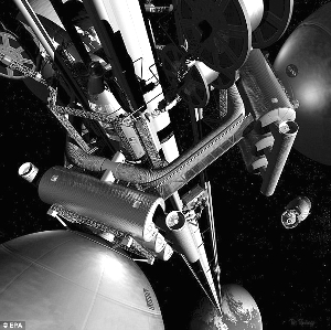 大林組計劃大約2025年開始修建天梯,先發(fā)射火箭將兩卷用碳納米管和其他材料制成的纜索運至距地大約300千米的位置;再用宇宙飛船解開纜索,朝地面放去;與此同時,飛船繼續(xù)飛升,攀至9.6萬千米高處。這一高度大約是地球與月球距離的四分之一。