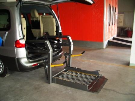 (1)、在使用輪椅升降機(jī)前,車輛必須停駛在平坦的路面上,注意不要停靠在斜坡上。