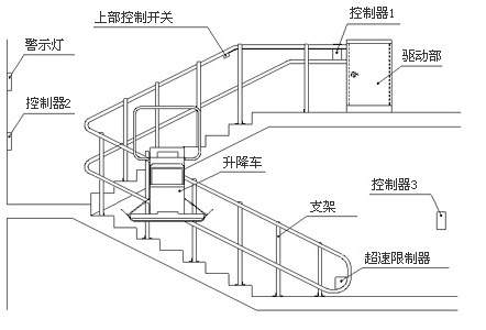 斜掛式輪椅升降機(jī),一種安裝在樓道系統(tǒng)利用電機(jī)牽引沿著軌道上下移動(dòng)并運(yùn)載乘客的無(wú)障礙安全裝置。它由驅(qū)動(dòng)系統(tǒng)、導(dǎo)軌、繩輪鏈、移動(dòng)平臺(tái)等組成。用于建筑樓道系統(tǒng)中,乘坐輪椅或爬樓梯困難的人員攀爬樓梯的專用設(shè)備。主要由主驅(qū)動(dòng)系統(tǒng),輔助驅(qū)動(dòng)系統(tǒng)、主控系統(tǒng)和安全系統(tǒng)組成。